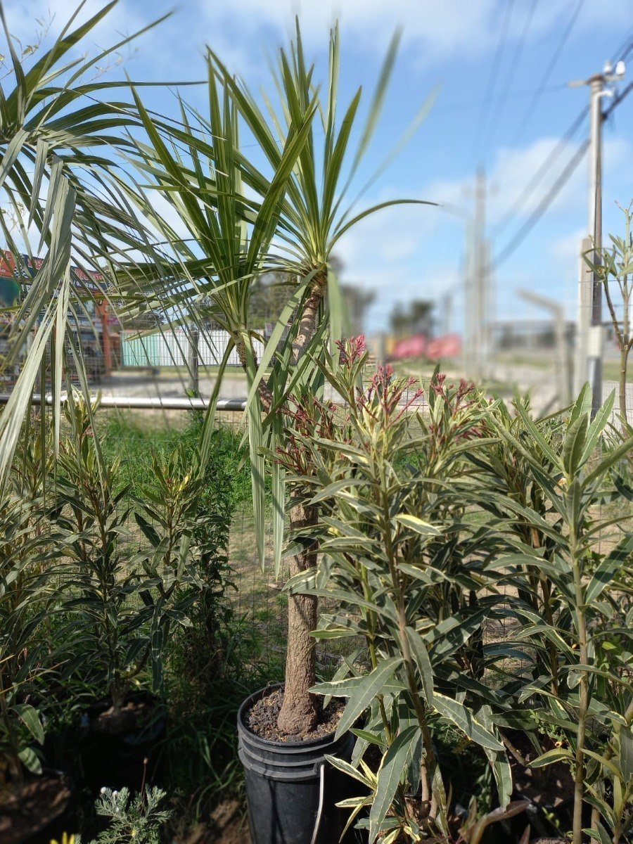 Dracena de 2 metros de alto, 1,20 alto de tronco, 0,60 alto de follaje, 0,10cm de diámetro de base, gran porte, ideal para decorar jardines.